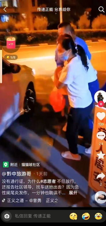 当晚她被紧急送医, 二天身体还未完全恢复的她照常出现在了抗疫一线的现场。面对同伴的关心,她坚定的说:“那都是过去的事了,现在已经好了,相信我,在消灭疫情前,我是不会撤退的,干活去吧”。